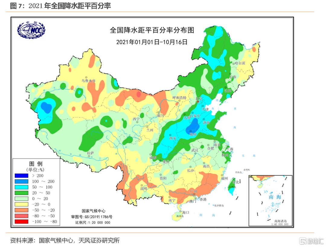 今年“南旱北涝”现象尤为明显。华北多雨的时节通常为每年7月中下旬至8月上中旬,但今年9月以来北方地区降水量较常年同期偏多1.4倍,为历史同期最多。