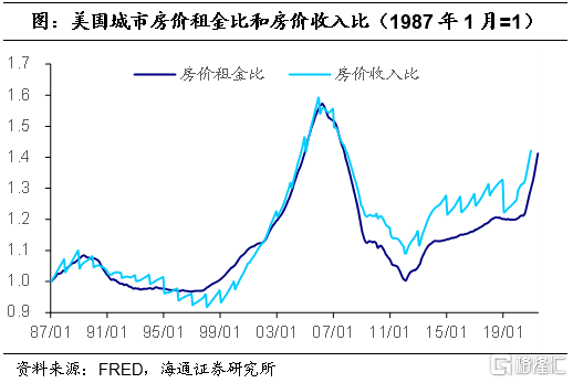从2000-2006年,美国的房地产市场十分繁荣,居民的住房拥有率上升至69%的历史最高点,而房价指数也增长了64%,尤其是2004-2006年,当季同比增速持续高于10%。但从房价租金比和房价收入比来看,这两个衡量地产泡沫程度的指标在2006年也达到了最高值,这说明美国的房价被严重高估了。