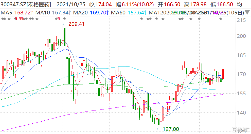 格隆汇10月25日丨国内临床CRO龙头泰格医药A股一度涨超9%报178.98元,H股一度涨近5%报158港元;泰格医药目前市值逼近1500亿元人民币。公司日前公告,2021年第三季度收入13.39亿元,同比增57.77%,净利5.26亿元,同比增64.80%;前三季度收入33.95亿,同比增47.58%,净利17.81亿元,同比增35.13%。光大证券点评称,泰格医药业绩超预期,Q3营收环比增速进一步提升,表明临床CRO业务增长强劲,疫情影响逐步衰退。与Q2相比,Q3销售费用率2.17%,管理费用率10.68%,均出现下滑,表明公司运营效率提升,行业内品牌度良好。