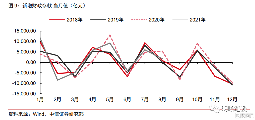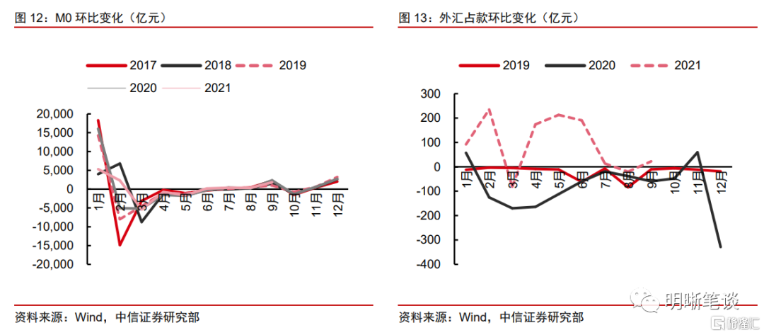 如何看待其他因素:缴准压力微增。流通中的现金M0具有很强的季节性,除了重要节日外,年内基本波动不大,2018、2019和2020年的11月,M0平均增加500亿元。同样的,参考2018-2020年同期情况,11月份扣除非银同业存款的人民币存款通常增加9000亿元,假设平均法定存款准备金率仍为8.9%,则法定存款准备金将增加约800亿元,扩大了流动性缺口,但整体影响较小。