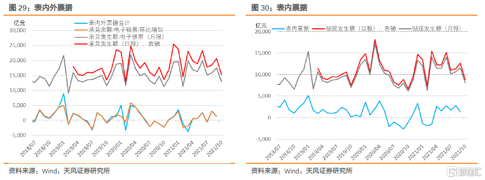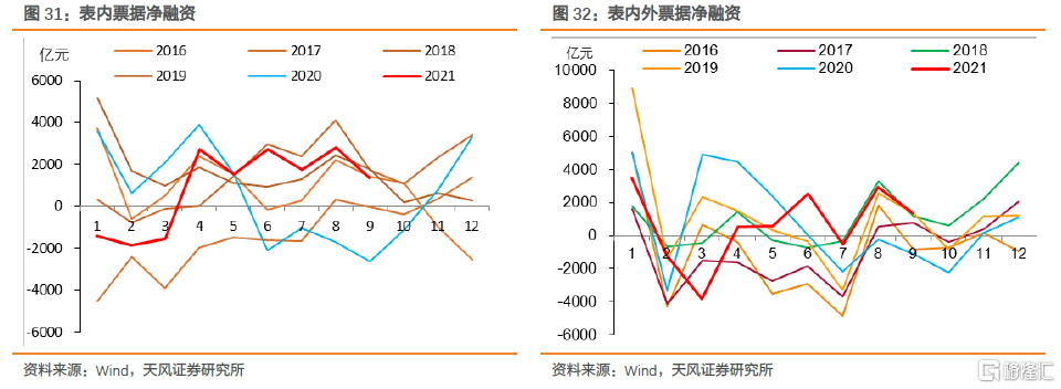 按照一般季节性,10月表内外票据净融资环比会有所回落。10月以来票据贴现利率整体低于9月,显示商业银行的票据贴现冲量行为仍在继续,信贷投放力度可能并不强,后续结构性宽信用效果仍需进一步观察。结合票交所的开票数据,我们预计10月表内外净融资规模约为700亿元。