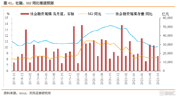 综合来看,我们预计2021年10月新增社融1.7万亿,较去年同期1.4万亿和一般季节性均明显提升,政府债券为最主要拉动项,社融增速预计小幅回升至10.1%。