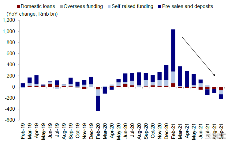 图表:随着销售急剧下滑,开发商融资出现枯竭