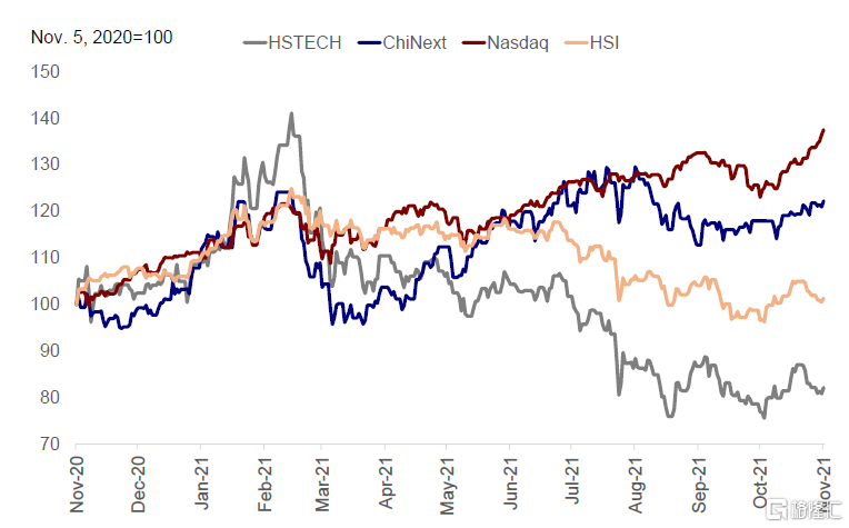 美联储11月FOMC议息会议正式宣布减量,市场对此已有充分预期,当前市场逐步关注美国预期的加息节奏。虽然加息通常不利于香港股市表现,但其影响取决于加息的性质、加息到来的速度有多快以及出人意料的程度有多大。由于美国经济表现强劲而加息,那么其影响会相对较小。但是,如果高通胀被迫美联储快速转变政策立场,那么会对海外中资股和香港经济产生更大的负面影响。
