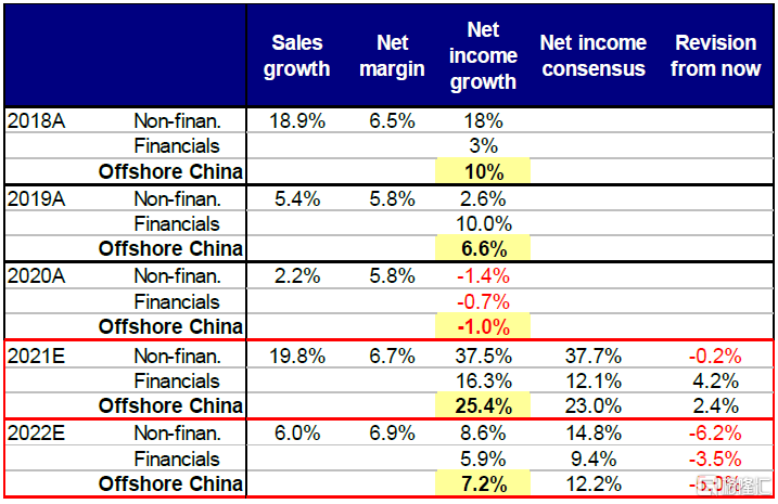 图表:我们预计2022年海外中资股市场净利润增长7.2%