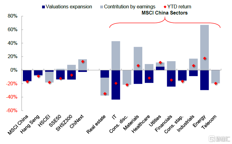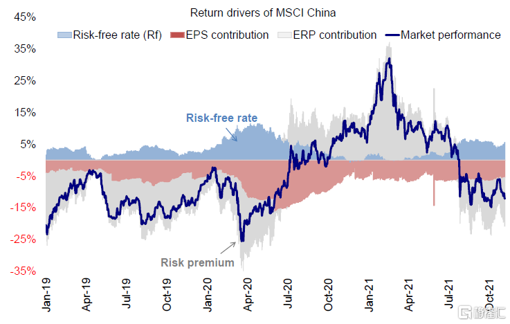 图表:2021年MSCI中国指数收益驱动因素分拆