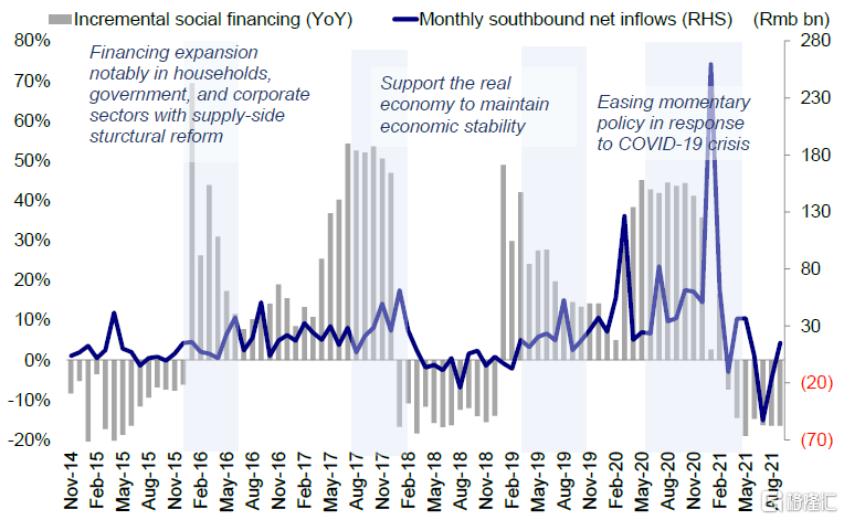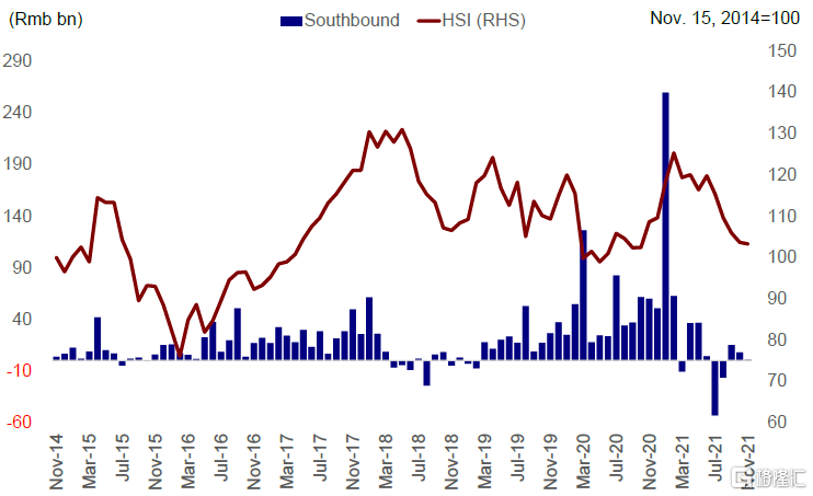 图表:我们判断明年内地流动性将利好成长板块,推动南向资金流入港股市场