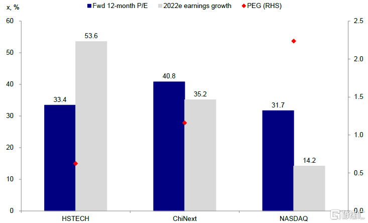 图表:恒生科技PEG明显低于创业板和纳斯达克指数