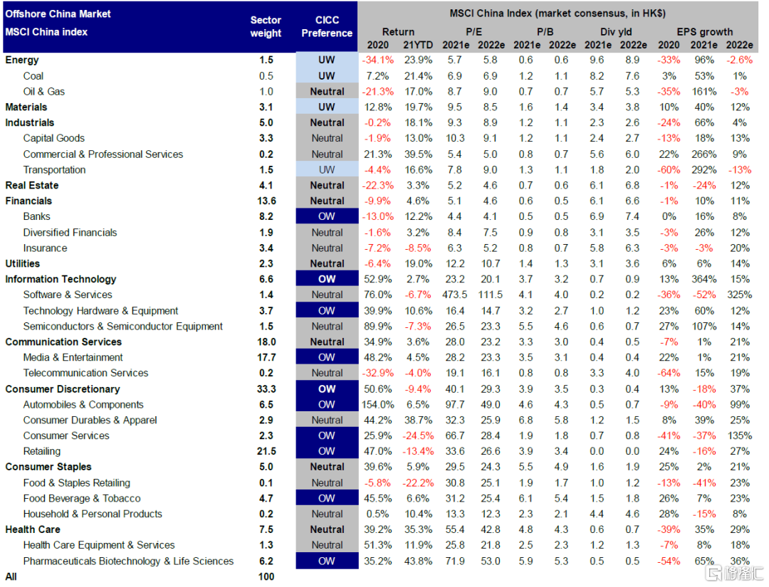这一情形下,随着刺激性措施同时提升估值和盈利,海外中资股市场有望得到明显提振。我们预计周期性板块有望继续受益于强劲的市场需求。