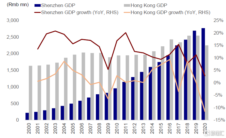 图表:过去20年香港与深圳发展对比