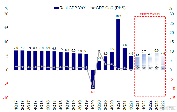 图表:2021年3季度中国GDP同比增速放缓至4.9%