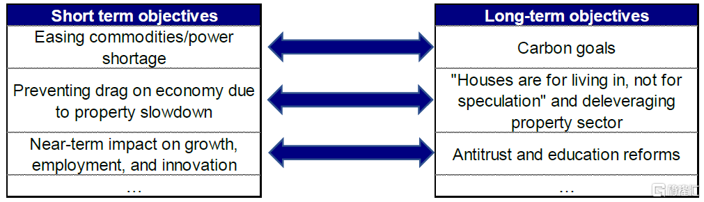 图表:中国政策对短期目标与长期目标间的平衡与取舍