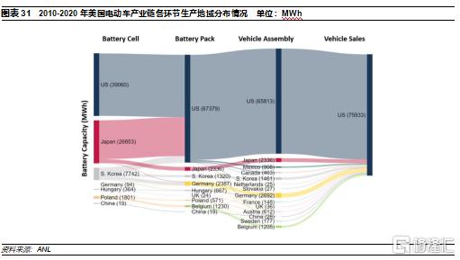 美国提升电池本土化制造能力。从2010年开始,美国动力电池市场经历了从无到有、从日韩进口到本地供应的转变,在政府的大力推动下,电池制造环节的本土化将成为长期发展的趋势。从整个产业链来看,美国市场在Pack环节已实现大部分的本土化生产,在电芯环节本土化生产率在逐步提升,在电池材料环节本土化制造能力则相对薄弱,未来有望吸引更多电池材料企业本地建厂以提升本土化制造比率。