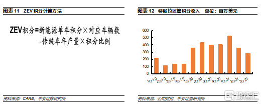 ZEV积分是美国典型的新能源汽车政策之一。ZEV零排放计划是加州于2009年开始实施的新能源汽车政策,它确定了车企每年应达到的零排放积分,企业可以通过生产一定比例的新能源汽车(18年开始将HEV排除在外)和向其他企业购买积分的方式完成目标,未完成目标的企业将面临5000美元/分的罚款;特斯拉通过出售监管积分实现可观收入,19/20/1-3Q21分别达到5.9、15.8、11.5亿美元。加州ZEV计划独立于联邦政府出台的政策,目前美国已有12个州加入该计划,同时ZEV也成为中国在内的其他国家制定新能源积分政策的范本。
