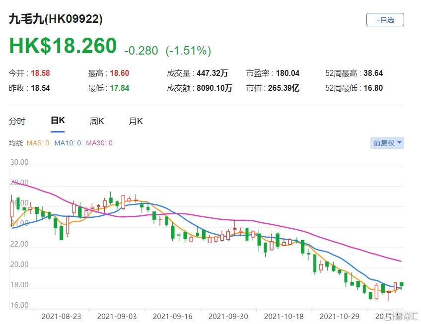 大和发研报指,九毛九(9922.HK)管理层表示“九毛九”第三季及10月份的同店销售按年分别恢复至2019年同期的约80%及约90%水平;而“太二”则恢复至约90%及超90%水平。该行重申其“买入”评级,目标价由34.5港元下调8.7%至31.5港元。大和指,虽然疫情持续及波动似乎对消费者情绪造成影响,但最近的爆发并未导致店舖运营大规模暂停,上周只有一家店停业。今年首10个月“太二”开增99家店,维持全年新增120家店的步伐。该行将其2021-23年盈利预测下调6~8%。