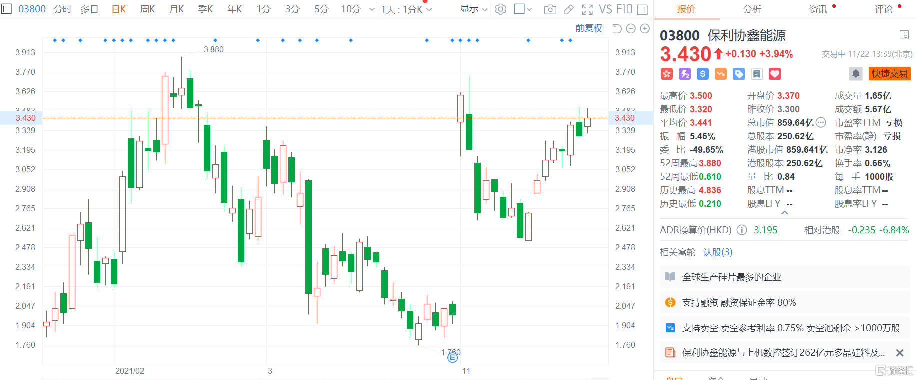 港股异动 | 保利协鑫能源逆势涨约4% 此前与上机数控签订262亿元多晶硅料及颗粒硅采购协议