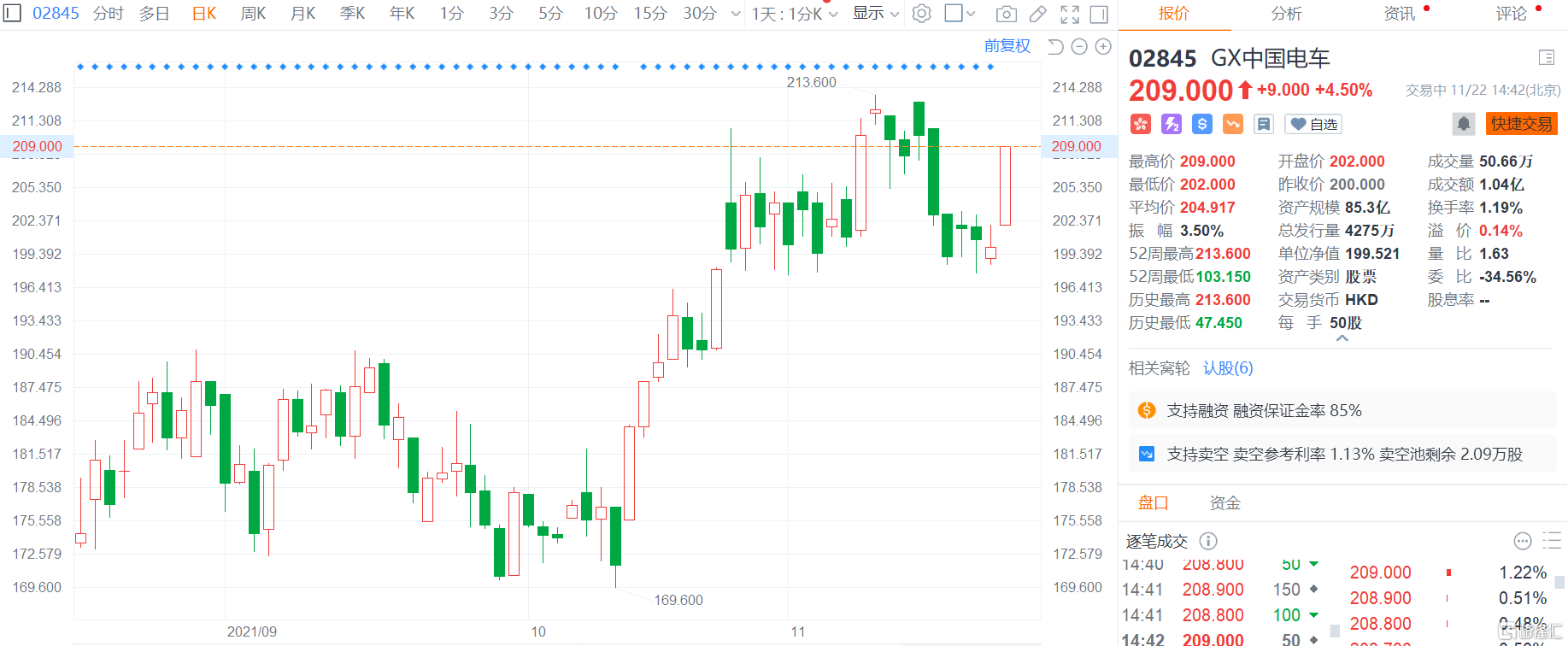 港股异动 | 中国电车ETF(2845.HK)涨4.5% 前两大权重股均走强