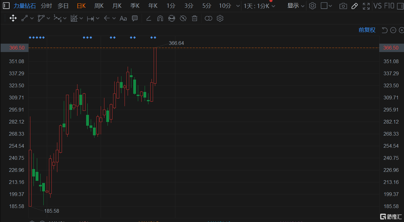 A股异动丨力量钻石(301071.SZ)大涨12%创上市新高