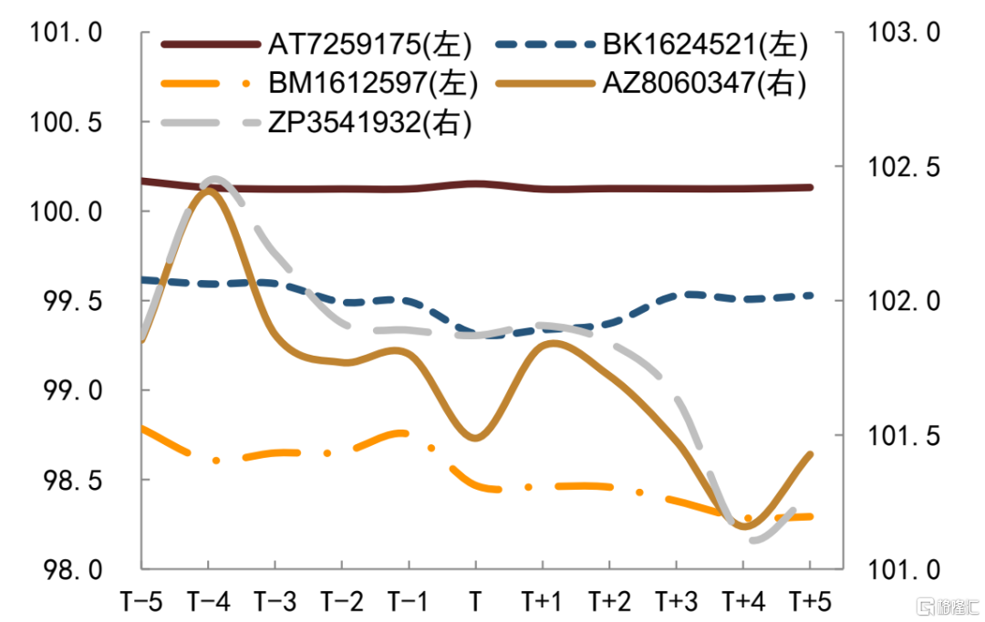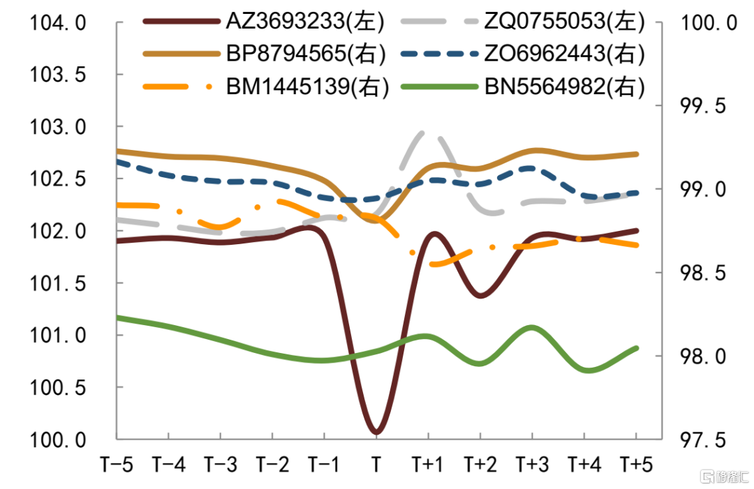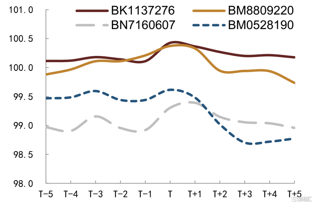 我们观测要约回购前后公司美元债价格的表现,我们以要约公吿日当天为T,观测公吿日前后债券价格走势,同时考虑是否同步新发债券及新发债券的发行结果。回购要约公吿日当日或次日回购债券价格存在小幅上行,但是整体影响较小,大多债券在价格上涨后也回落,而当市场整体走弱时要约回购对债券价格的影响则进一步削弱,长期来看,债券价格更多还是受到公司信用资质和市场环境影响。