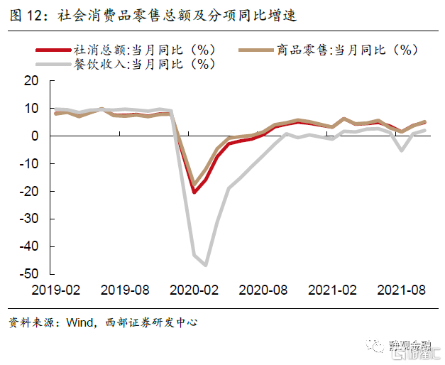 11月9日,广东省印发了《关于促进城市消费的若干政策措施》,提出逐步放宽广州、深圳汽车上牌指标限制。11月12日,人民银行在《人民银行党委召开会议认真传达学习党的十九届六中全会精神》中指出,坚持稳健的货币政策,做好跨周期设计,统筹考虑今明两年政策衔接,更好支持消费投资恢复,抑制价格过快上涨,促进经济社会高质量发展。以上表明政策重心将向促消费、保中下游行业利润方向倾斜的预期已经逐步兑现。但我们认为在房产税试点落地预期下,地产销售端压力或将加大,会进一步拖累房屋施工及新开工面积。目前出台的政策仍然不够“稳增长”,且向居民收入及消费端的传导存在时滞,明年或将出台更多促消费、保中下游企业利润、支持小微企业的政策出台,有助于提振消费端。