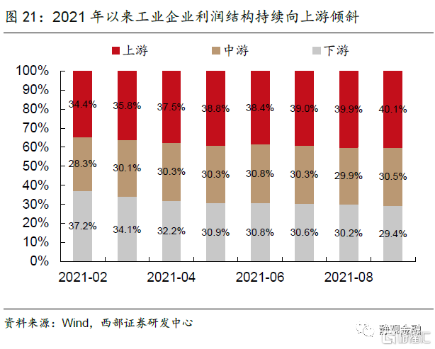 十四五期间,我国的转型方向是“消费大国与制造业强国”,预计在稳增长压力下,明年或有更多促消费、保中下游企业利润、支持小微企业的相关政策出台,这将对就业和收入的逐步恢复提供支撑,带动消费温和复苏。往后看,假若无政策引导,工业企业利润结构或仍以上游占优,叠加下游需求疲软,中游利润进一步受到侵蚀,这一格局有悖于十四五的政策基调。我们预计在转型诉求下,未来1-2年促消费、保中下游行业利润等相关政策有望逐步落地。事实上,10月中下旬以来,政策端已经采取行动平抑国内高企的上游原材料价格,并且开始向促消费方向发力。