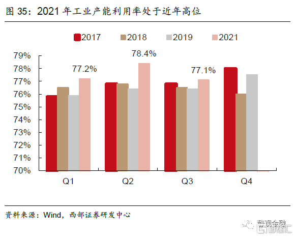 政策层面的边际变化,有望拉动明年的制造业投资。1)能耗双控政策执行力度边际弱化。十一之后,政策端愈发关注保供稳价,10月8日国常会明确提出“纠正有的地方‘一刀切’停产限产或‘运动式’减碳”,之后通过放开燃煤电价、煤炭增产增供等各类措施,平衡上中下游利润格局,今年以来工业产能利用率明显高于季节性(2017-2019同期),未来随着价格传导机制的畅通,有助于提振中下游制造业的开工和投资意愿。2)“财政前置”下,多地正密集谋划或申报2022年专项债项目,以在明年尽早发行和使用专项债,带动有效投资稳经济[4]。预计明年基建投资大概率回暖,有利于推动制造业扩大设备投资与更新。3)地产调控政策的“纠偏”,修正了市场对明年地产投资的极度悲观预期,预计与地产链相关的制造业企业投资意愿将有所回升。此外,绿色贷款、普惠贷款保持较高增速,有望为制造业投资提供定向支持。