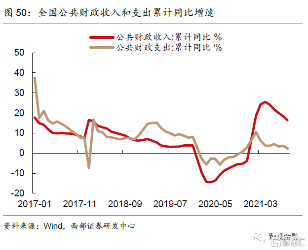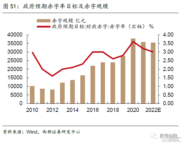 2022年赤字率将回归正常区间,赤字规模或略低于今年。今年上半年,在稳增长压力不大的背景下,政策层面更加强调对地方政府债务的监管约束,财政支出呈现明显的后置特征,1-9月,全国公共财政支出累计同比增速仅为2.3%,远低于财政收入16.3%的增长水平。随着明年疫情影响的减弱,预计财政政策将逐渐回归正常区间,但内外需同步走弱下稳增长压力将逐步加大,财政仍有适度发力的必要性,赤字率可能在2021年3.2%的基础上小幅调减至3%,根据我们测算,乐观情形下对应赤字规模约3.5万亿元,略低于2021年。
