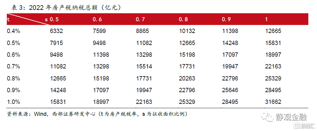 “宽税基、低税率”或为房产税试点主基调,预计短期对地方财政的贡献有限。第十三届全国人民代表大会常务委员会第三十一次会议指出,“国务院制定房地产税试点具体办法,试点地区人民政府制定具体实施细则。国务院及其有关部门、试点地区人民政府应当构建科学可行的征收管理模式和程序。”也就是说,此次房地产税试点办法或仍延续了过去5年中国房地产市场的调控思路,也即:因城施政。但若试点城市均为过去数年房地产热度较高的城市、且在共同富裕的背景下,预计房地产税或以“宽税基、低税率”为基本基调。2020年,全国土地出让收入达到8.2万亿元。根据我们测算,即便房产税明年在全国推行,可贡献的税收收入区间为6332亿元—31662亿元,短期根本难以替代土地出让收入。
