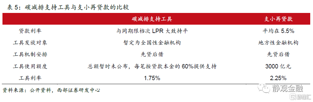 2021年11月8日,央行宣布推出碳减排支持工具。关于该工具的具体细节,人民银行在公吿里提到:“人民银行通过碳减排支持工具向金融机构提供低成本资金,引导金融机构在自主决策、自担风险的前提下,向碳减排重点领域内的各类企业一视同仁提供碳减排贷款,贷款利率应与同期限档次贷款市场报价利率(LPR)大致持平。碳减排支持工具发放对象暂定为全国性金融机构,人民银行通过‘先贷后借’的直达机制,对金融机构向碳减排重点领域内相关企业发放的符合条件的碳减排贷款,按贷款本金的60%提供资金支持,利率为1.75%。”