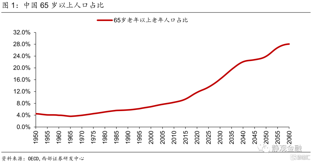 根据世界衞生组织的定义,65岁以上老年人口比率超过7%的社会即为老龄化社会、达14%为老龄社会、达20%为超老龄社会。2001年我国初步进入老龄化社会,2020年老龄人口占比11.7%。根据OECD估计2026年我国将进入老龄社会,2036年进入超老龄社会。随着高龄和失能失智老人群体扩大化,我国对养老服务能力和产业发展提出更高要求。