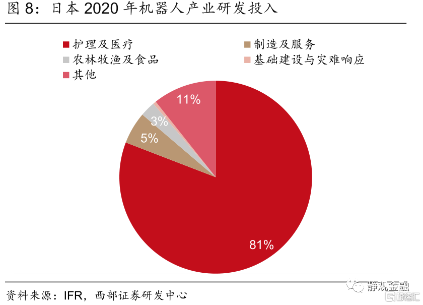 2)韩国养老护理产业特征:智能养老快速发展。韩国推出了以人工智能为基础的老人护理服务,并建立数字化医疗生态。与日本类似,韩国积极推进养老机器人的发展,提供个性化护理。