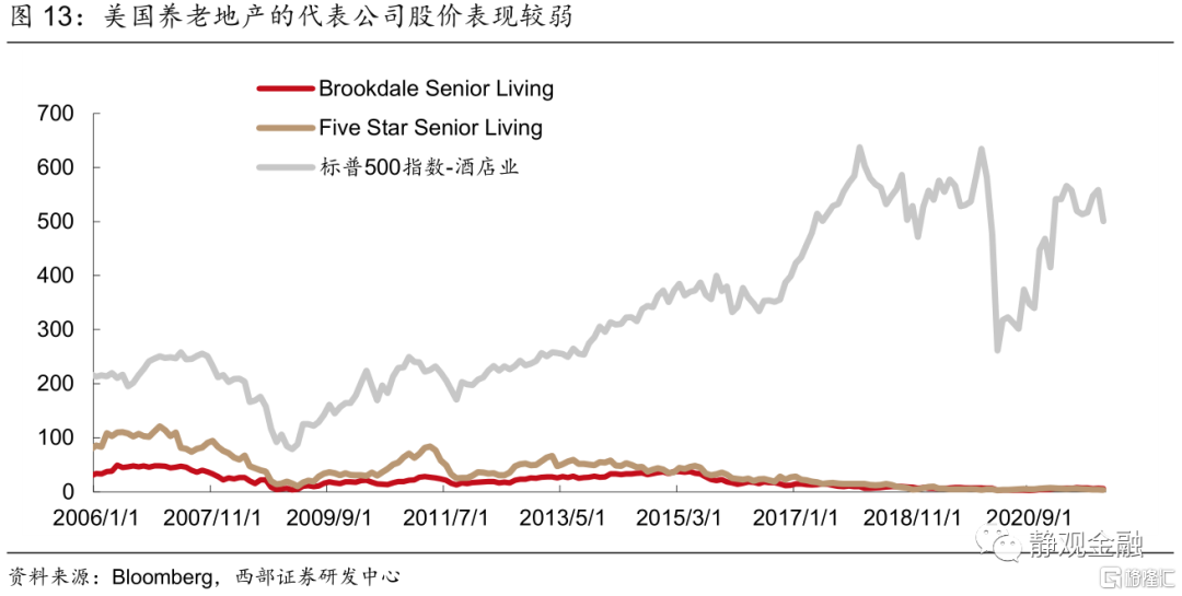 美国的养老机构上市公司股价表现不佳;且养老机构市场化或在我国并不合适。美国为老年人提供居住场所的养老地产公司,股价表现大大弱于房地产投资信托REITS的一般水平;例如代表公司布鲁克代尔、Five Star Senior Living,在2006年至2020年分别累加下跌85.1%、91.2%。结合我国国情,养老机构市场化或并不适合。我国老年群体更倾向于居家养老,收入来源受限导致消费意向较弱,较难接受高额的机构养老。