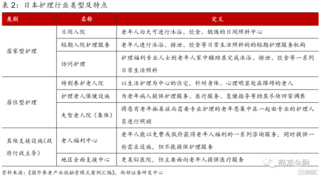 (一)日本:老年人消费实力强劲,服务型住宅和长期护理为主要产业