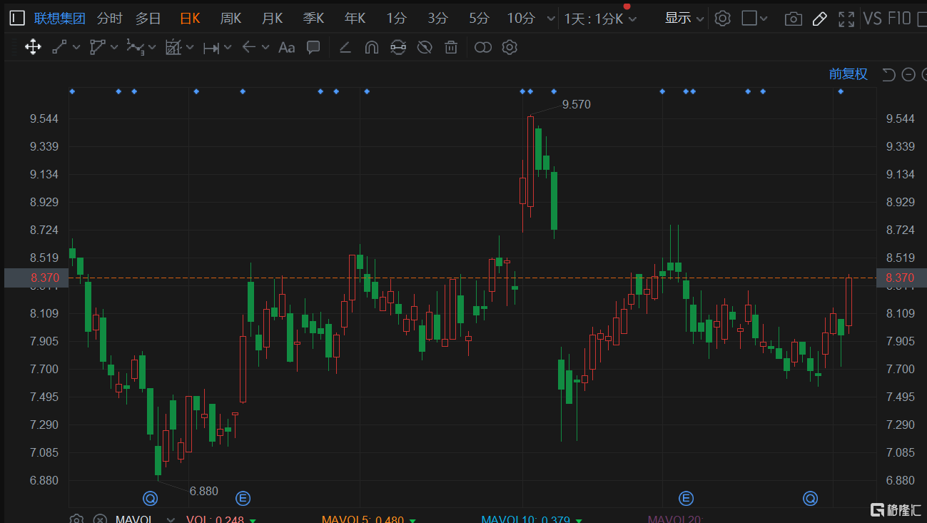 格隆汇12月3日丨联想集团(00992.HK)逆势拉升涨5.28%,报8.37港元,总市值重回千亿港元上方。第三季度中国PC市场出货量超过1500万台,比去年同期增长3%,环比增长10%。其中,联想集团凭借40%的市场份额,600万台出货量蝉联中国PC市场第一。据报告显示,公司三季度出货量同比增长8%,市场份额增长2%。公司在中国PC市场龙头地位明显,与第二名市占率差距也在持续拉大。