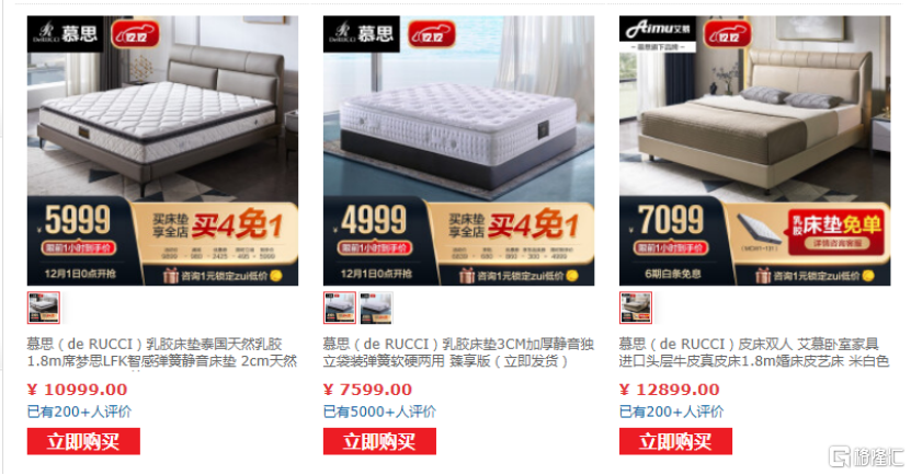 与其他同行不同,慕思自主品牌销售的占比高达90%以上,反映到消费端,就是其产品价格远高于其他国产品牌。