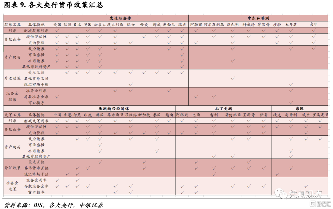 自疫情爆发以来,全球央行实施了史无前例的货币刺激政策。发达国家央行均将利率降至零区间或者维持负利率,同时开启了大规模的量化宽松政策。虽然新兴市场和发展中国家央行主要依靠降息政策,但是如印度和菲律宾等国家也首次加入了购买政府债券的队伍(见图表9)。