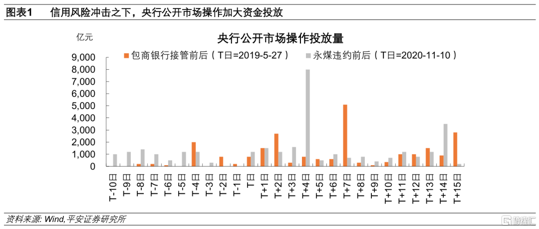 其次,恒大正式开启风险处置工作后,货币政策也有必要加强配合,避免资产价格剧烈波动引发潜在金融风险。12月3日,恒大对一笔2.6亿美元债务未能履行担保义务,并宣布启动境外债务重组,正式坐实债务违约,“一行两会”纷纷做出回应以稳定市场情绪。央行有关负责人表示“短期个别房企出现风险,不会影响中长期市场的正常融资功能”;证监会表示“支持房地产企业合理正常融资,促进资本市场和房地产市场平稳健康发展”;银保监会表示“在落实房地产金融审慎管理的前提下,指导银行保险机构做好对房地产和建筑业的金融服务”。央行此前在三季度货币政策执行报告中强调“防止在处置其他领域风险过程中引发次生金融风险”。2019年“包商银行接管事件”,2020年“永煤违约事件”信用风险冲击之下,市场一度出现资金紧张态势,央行的公开市场操作明显加大了资金投放力度,助力防风险与稳定市场情绪。