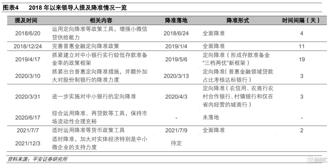 2018年以来,总理在国常会或其他场合曾经多次提及降准,除2020年6月降准并未落地外,央行往往在2~19天内便宣布降准。考虑到本次会见级别较高、12月MLF续作窗口期将至、且2022年春节时点较早,降准或会较快推出。