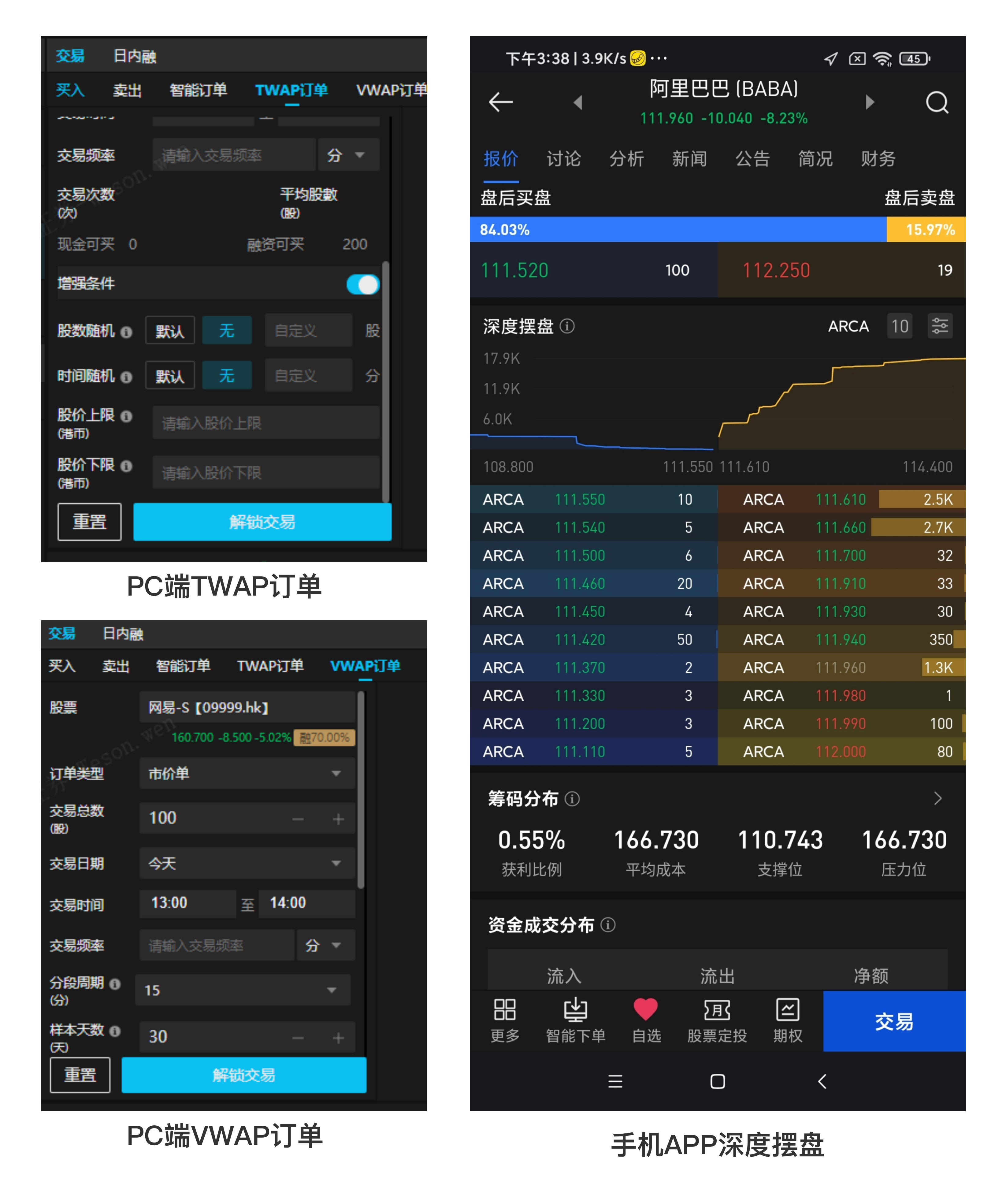 针对较为专业的港美股投资人,uSMART盈立证券不仅提供APP,还可提供PC、API等交易方式。提供美股深度摆盘,PC端上线了TWAP、VWAP,可以多窗口浏览行情和交易,满足专业人士更加快捷、更加多元的投资需求。