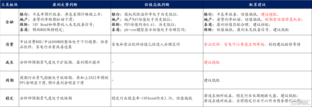 中观层面:建议超配银行和成长、低配周期,左侧布局食品饮料和家电。