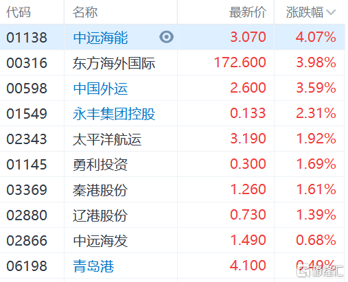 港股异动 | 港口航运股普涨 中远海能(1138.HK)涨超4%