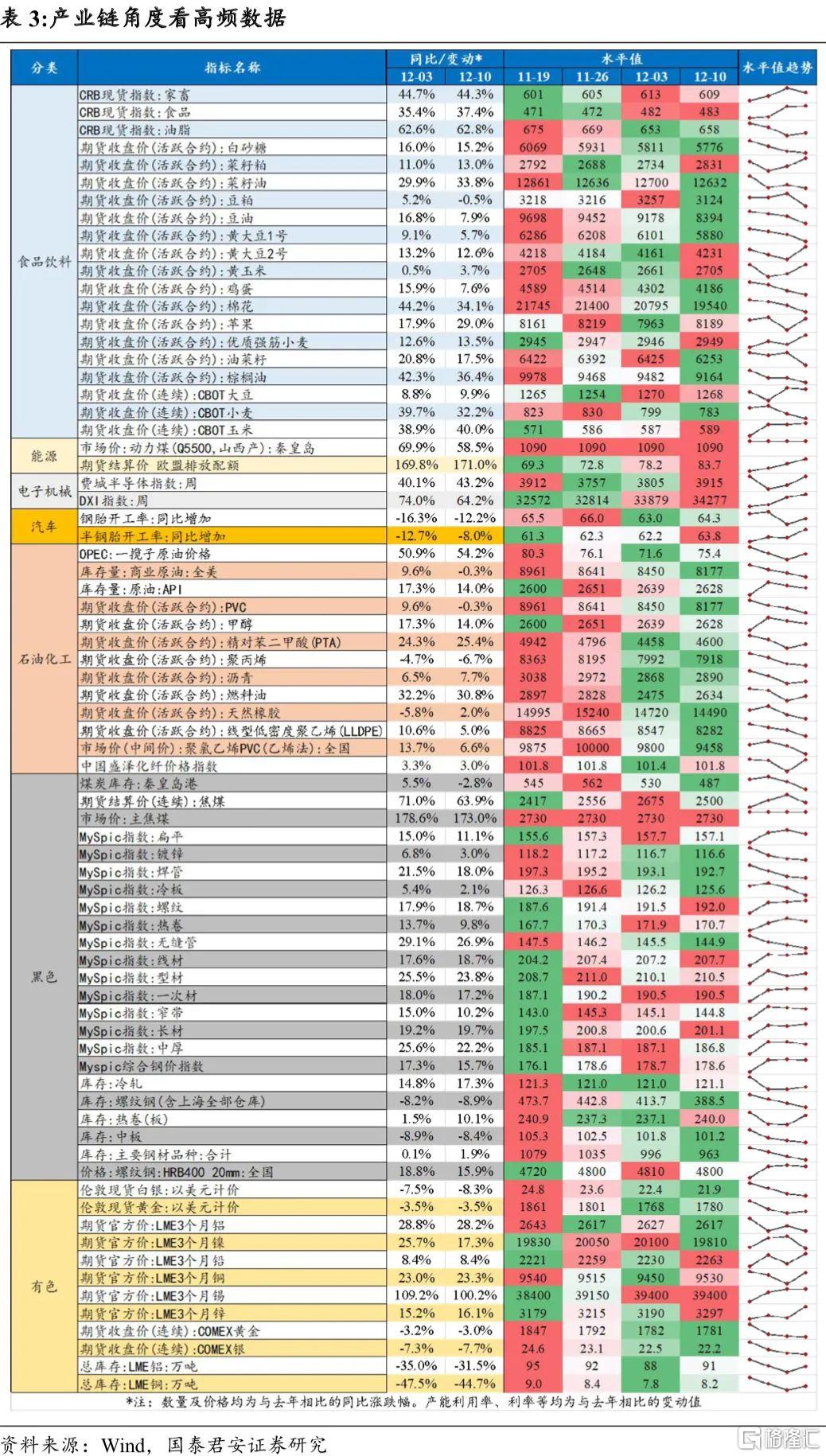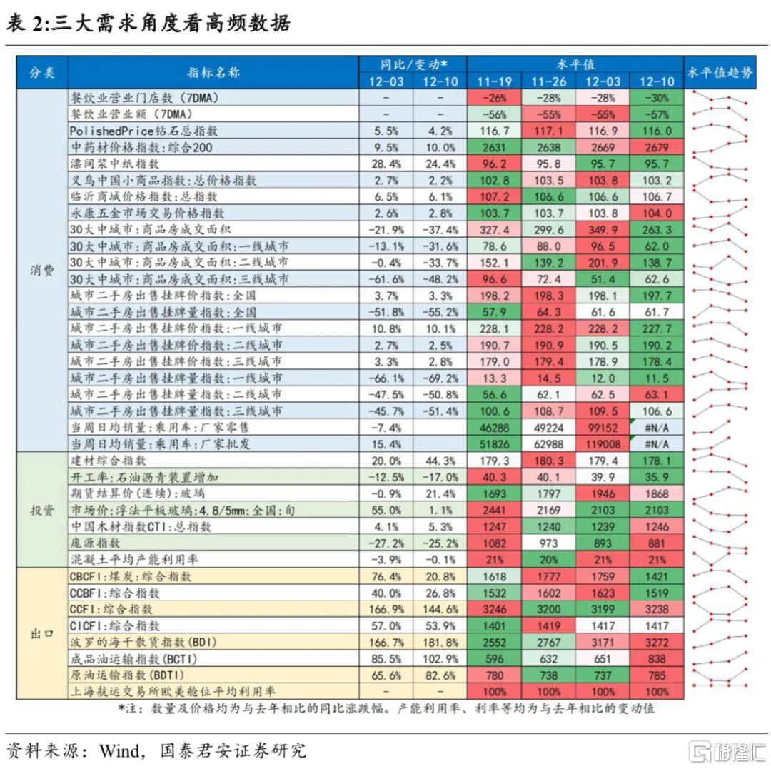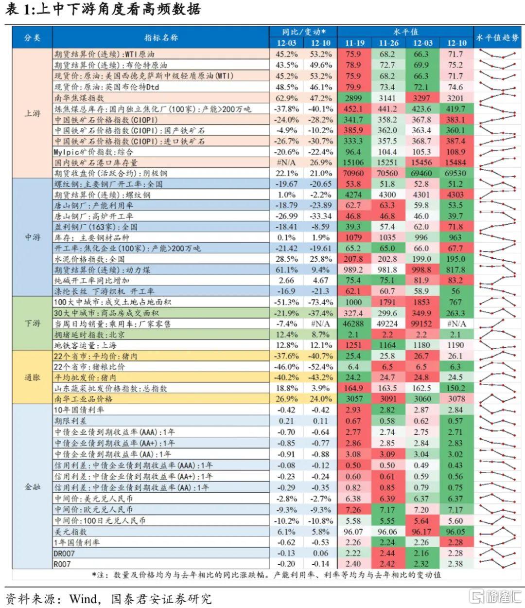 下游:土地成交大幅下跌,汽车销售向好。12月10日当周,100大中城市土地成交降幅较大,商品房成交同样回落;北京拥堵延时指数继续下降;乘用车销量持续增加。