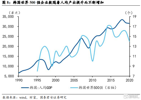 高质量发展阶段,影响世界的大企业仍会不断涌现,消费领域、科技领域将是未来长期主线。经济转型期告别粗犷式野蛮生长,迎来了以提高生产效率、加强创新推动增长的新阶段,这一阶段虽告别了高速增长,但生产效率和人均GDP仍在不断提升,此过程中仍然会有大量影响世界的企业涌现,如韩国三星电子、现代汽车、CJ集团等,日本日立、三菱、铃木等都是在经济转型过程中发展壮大。而诸多行业中,科技领域和消费领域是我国大企业、品牌影响力提升的重要方向。