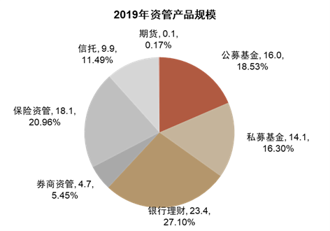 资料来源:银保监会,银行业理财登记托管中心,基金业协会,证券业协会,保险业协会,信托业协会,中金公司研究部 注:资管行业规模为剔除通道业务的口径