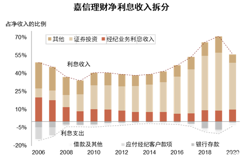 图表14:2015年后嘉信理财净利息收入占财富管理收入比重快速提升,主要来自证券投资收入