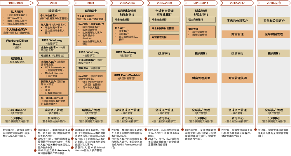 图表16:UBS财富管理部门演变过程及内部组织架构变化