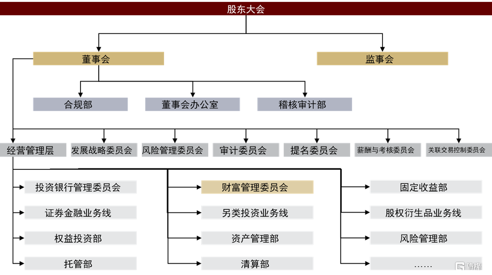 受组织架构影响,国内财富管理收入口径偏窄。目前国内大部分机构财富管理业务仅作为一或二级部门以松散的组织架构形式展业,财富管理收入仅包括手续费收入,其他财富客户发起的金融服务收入未被合理纳入和财务确认。向前看,财富管理业务贡献度提升,客户、产品、资产、科技、考核等职能逐步整合以财富管理部门或子公司形式存在,财富管理收入口径多元化。