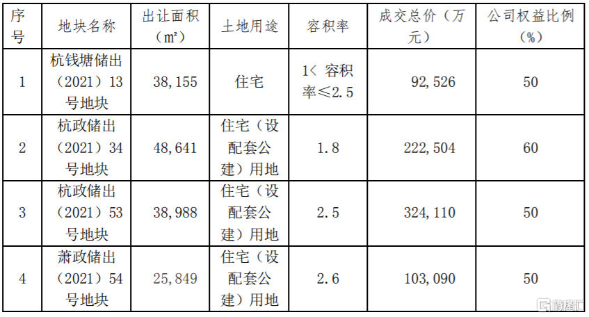 滨江集团(002244.SZ):近日竞得4宗住宅用地