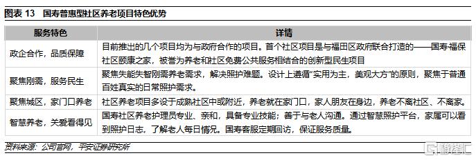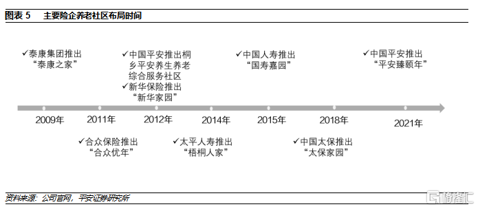 3)资源端:险企医疗资源丰富,养老社区打通产业链上下游。国内多家险企长期与国内外医疗资源合作对接,助力养老社区推行“医养结合”新模式。以泰康为例,泰康之家在社区内配建二级康复医院,打造“一个社区+一个医院”模式;此外,泰康之家与北京协和医院、北京安贞医院等三甲医院合作,开通转诊绿色通道,满足客户全套医疗需求。养老社区向上承接养老险、健康险、储蓄险等保险产品,向下带动医疗服务、护理服务等健康附加服务,险企通过自建养老社区,充分打通产业链上下游、进一步整合并盘活险企整体资源。