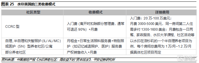 ③水印养老社区也具备产权销售模式,即出售养老社区带服务项目的房间产权,水印仍持有餐饮等配套服务部分,采用“产权销售收入+月费”形式。